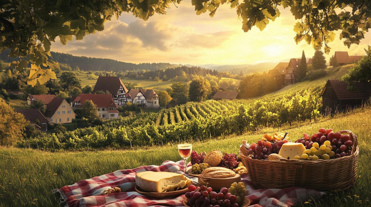 Pour un pique-nique authentiquement alsacien, privilégiez les spécialités qui voyagent bien et se dégustent froides. Le traditionnel kougelhopf se révèle parfait pour un en-cas sucré, tandis que les bretzels artisanaux constituent une collation salée idéale. Ne faites pas l'impasse sur le célèbre fromage de Munster, que vous pourrez déguster sur une tranche de pain de campagne aux graines. Les charcuteries locales comme le jambon fumé de la Forêt-Noire ou la tourte de viande feront également merveille. Pour les amateurs de vin, une bouteille de Riesling ou de Gewurztraminer, conservée au frais dans un sac isotherme, accompagnera idéalement ces mets. Complétez votre festin avec quelques fruits de saison achetés sur les marchés locaux et des tartelettes aux myrtilles ou à la mirabelle pour une touche sucrée.